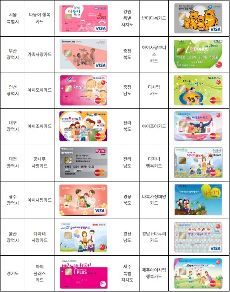 지역별 다자녀카드 예시