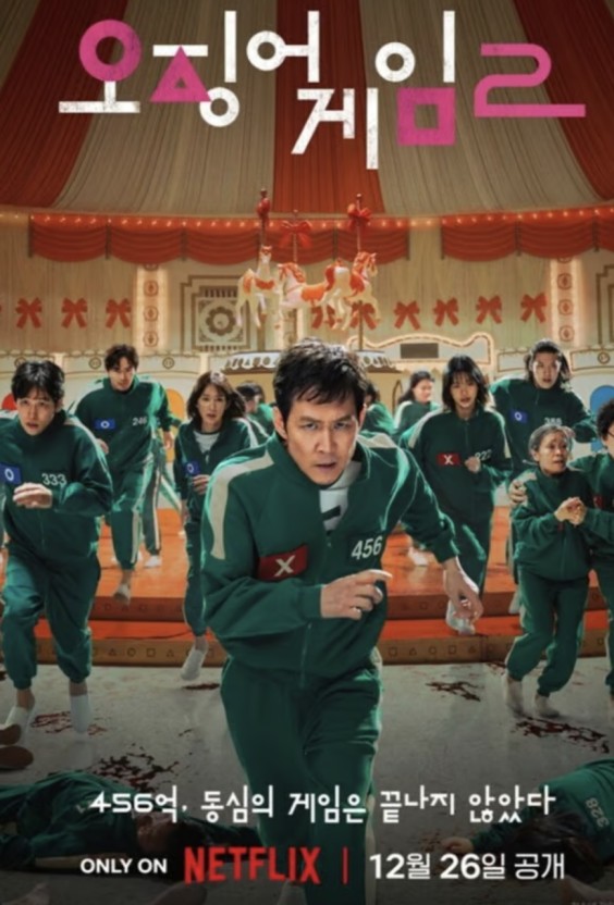오징어 게임 시즌 2는 2021년 공개된 시즌 1의 후속작으로, 전 세계적으로 가장 성공한 넷플릭스 드라마의 귀환입니다. 2024년 12월 26일에 넷플릭스에서 개봉하였습니다. 넷플릭스 글로벌에서 1위를 할 만큼 전세계에서 주목한 드라마입니다.